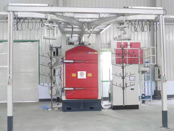 吊鉤式拋丸機的清潔室是用于工件拋丸的封閉空間。 在拋丸室上安裝兩套噴砂機,以確保清潔工件的所有部件。 第四代懸臂式離心噴砂機具有大爆破和高拋速,可顯著提高清洗效率,獲得滿意的清洗質量。